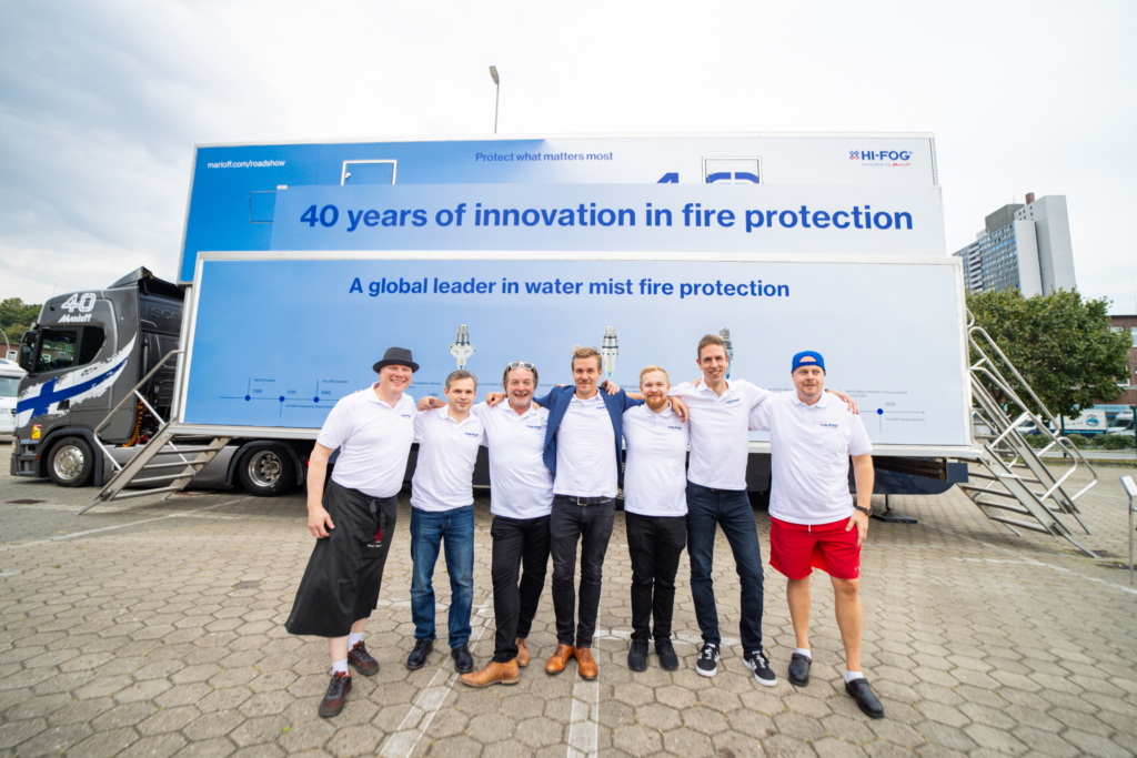The Marioff 40 Roadshow continued on Tuesday, September 9th, with a stop in Hamburg, Germany, at the Cruise Center Altona. This central waterfront location provided the perfect setting to welcome customers and showcase the HI-FOG® water mist fire protection system as part of Marioff’s 40th anniversary celebrations.