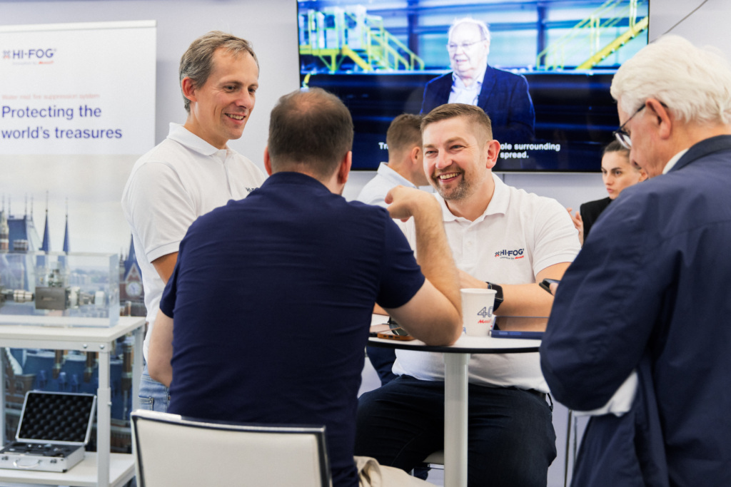 The event began with a celebration of the recently opened Marioff Poland office, established following Marioff’s acquisition of Instac’s HI-FOG® business. Our employees gathered to mark this exciting milestone before we opened the roadshow truck to customers in the afternoon. Visitors had the chance to experience live HI-FOG® demonstrations and connect with our experts on the latest in water mist fire protection.